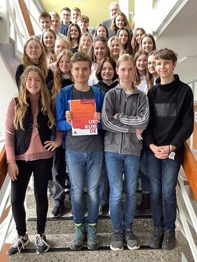 Wir, die Klasse 9a, haben im letzten Halbjahr unter der Leitung unseres Politiklehrers Herrn Rottmann am Bundeswettbewerb zur Politischen Bildung teilgenommen. Unser Thema lautete „Bedingungsloses Grundeinkommen – Paradies oder Irrweg?“. Nach intensiver Recherche, der Analyse der einzelnen Parteipositionen, der Auseinandersetzung mit den verschiedenen Initiativen zum Grundeinkommen usw., versuchten wir anschließend in Rollenspielen, die unterschiedlichen Positionen nachzuvollziehen und die möglichen Auswirkungen des Grundeinkommens auf Menschen in unterschiedlichen Lebenssituationen zu erfassen. Für die Präsentation unseres Projektes wählten wir die Form eines Podcasts. Dies war die größte Herausforderung, denn um diese Vielfalt an Informationen und Positionen verständlich rüberzubringen, standen nur vier Minuten zur Verfügung. So verbrachten wir viele Stunden im Tonstudio unseres Musiktraktes, bis unser Podcast schließlich fertiggestellt war und eingeschickt werden konnte.