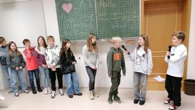 Die Klasse 5d hatte einen adventlichen Impuls zum Thema „Geschenke und der wahre Kern von Weihnachten“ vorbereitet. Stolz präsentierten die Fünftklässler ihr tagelang eingeübtes Werk und durften sich dann über jede Menge Applaus der Eltern freuen.