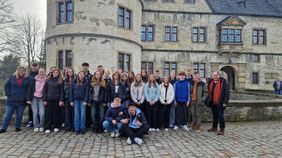 Am Mittwoch, den 28.02.24 (10b und 10d) und Donnerstag, den 29.02.24 (10a und 10c), fuhren wir gemeinsam mit dem Bus nach Wewelsburg. Als wir an der Wewelsburg angekommen waren, wurden wir direkt herzlich begrüßt. Unsere Führung startete mit einem Eingangsfilm, der uns über das Thema „Ideologie und dem Terror der SS“ aufklärte. Die Geschichte der SS in Wewelsburg sowie des örtlichen Konzentrationslagers machte uns alle betroffen und sehr nachdenklich über das, was damals passiert ist.