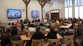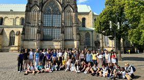 Montagmorgen nahmen die französischen Schüler:innen ein zweites Mal am Unterricht teil. Um 9:30 Uhr starteten deutsche und französische Schüler:innen dann zum gemeinsamen Ganztagsausflug nach Münster. Dort bekamen wir deutsche und französische Stadtführungen. Während der Führung besichtigten wir z.B. den St. Paulus-Dom und das historische Rathaus. Nach der Stadtführung hatten alle Schüler:innen Zeit, sich frei in Münster zu bewegen. Man konnte sich zum Beispiel noch mehr Sehenswürdigkeiten anschauen oder am Aasee verweilen oder sich noch Andenken kaufen.