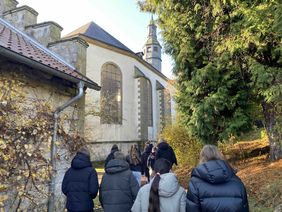 Die Unterrichtsreihe, die fächerübergreifend in Geschichte und Religion durchgeführt wird, bietet den Schüler:innen die Möglichkeit, das Leben und Wirken der Ordensgemeinschaften nicht nur theoretisch, sondern auch hautnah zu erleben. Während der Exkursion erhielten die Jugendlichen eine ausführliche Führung durch die Kapelle des ehemaligen Klosters und konnten dabei auch besondere Orte wie die Orgelbühne und den Kapitelsaal besichtigen. So wurde Geschichte lebendig erfahrbar. Auch der Fußweg hin und zurück zum Gut Holthausen bot viele Gelegenheiten, Spuren des klösterlichen Wirkens im heutigen Büren zu entdecken. An zahlreichen Beispielen erfuhren die Schüler:innen, wie der Einfluss der Ordensleute bis heute das Stadtbild und das Alltagsleben prägt.