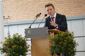 Stufensprecher Dustin Kreipe dankte in seiner Abschlussrede den Eltern und insbesondere auch allen Mitwirkenden am Liebfrauengymnasium für ihren Einsatz. Die Verleihung der Abiturzeugnisse endete passend mit dem Abisong „Das kann uns keiner nehmen“.