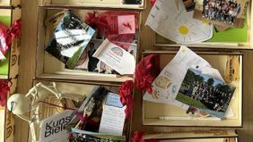 Schulleiter Thorsten Harnischmacher gratulierte allen herzlich zum bestandenen Abitur - selten schaffte es ein Jahrgang auf Anhieb, alle Prüfungen zu bestehen – und überreichte ihnen als Überraschung liebevoll gestaltete „Schachteln“ als Erinnerung an die gemeinsame Schulzeit. Schulleitung, Träger, Kooperationspartner, aber vor allem zahlreiche Kolleginnen und Kollegen legten individuelle Kleinigkeiten, Fotos und alte Briefe in die personalisierten Boxen. Die Abiturientinnen und Abiturienten zeigten sich gerührt von dieser Geste, stöberten direkt in ihrer Kiste und schwelgten in Erinnerungen. - „Das Leben ist wie eine Schachtel Pralinen – man weiß nie, was man bekommt“.