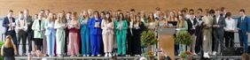 Verschiedene Rednerinnen und Redner gaben den Abiturientinnen und Abiturienten zahlreiche Glückwünsche zum bestandenen Abitur und gute Wünsche für die Zukunft mit auf den Weg. Landrat Christoph Rüther gratulierte der Abiturientia herzlich und ermunterte dazu, die Möglichkeiten des Neuen auszuschöpfen und dabei die eigenen Wurzeln im Kreis Paderborn nicht gänzlich aus dem Blick zu verlieren. Susanne Henneken, Vorsitzende der Schulpflegschaft, ermutigte aus Elternsicht die jungen Erwachsenen dazu, die neuen Wege verantwortungsvoll zu gestalten. Für die Schülervertretung und den Jahrgang der Q1 überbrachten Christina Schlüter und Rosalie Henneken Glückwünsche.