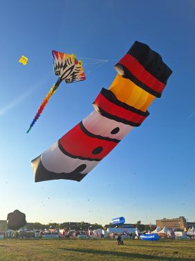 Highlights waren dabei u.a. ein 30m großer Zwerg und ein 20m-Leuchtturm meines Vaters. Teilweise war sogar so viel Zugkraft auf den Leinen, dass ich mich in die Leinen hängen konnte.