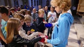 Am ersten Schultag wurden 125 neue Schüler:innen von Schulleiter Thorsten Harnischmacher und Erprobungsstufenkoordinatorin Andrea Balthaus am LFG begrüßt. Der erste Schultag startete mit einem gemeinsamen Gottesdienst in der Pfarrkirche St. Nikolaus. Pastor Nguyen zelebrierte die festliche Messfeier zum Thema „Gemeinsam sind wir ein Ganzes“, die die Klasse 6c im Vorfeld zusammen mit ihrem Religionslehrer Herrn Steffens für die neuen 5er vorbereitet hatte.