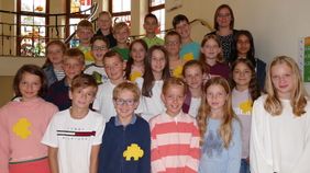 Das Puzzle – bestehend aus vielen wichtigen Einzelteilen – stand hierbei als Sinnbild für die Gemeinschaft, nicht nur zu Gott, sondern auch zu den neuen Mitschüler:innen thematisch im Mittelpunkt. Das zeigte sich schon vor Beginn dieses Anfangsgottesdienstes, denn alle „Neuen“ hatten sich einen farbigen Anhänger mit einem Puzzleteil an ihre Kleidung geheftet. Anhänger derselben Farbe zeigten auf diese Weise die Klassenzugehörigkeit an.