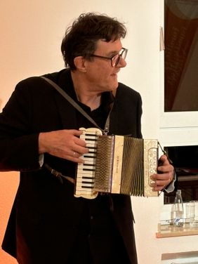 Der Faschismus hinterlässt auch in der Kabarett-Szene Deutschlands in dieser Zeit tiefe Wunden. Fast alle Kabaretts müssen aus politischen Gründen schließen. Aber in Berlin leistet „Die Katakombe” unter ihrem Gründer Werner Finck spitzfindigen Widerstand, obwohl ständig die Internierung droht. Andere Kabarettisten gründen im benachbarten Ausland deutschsprachige Kabaretts, welche die Verhältnisse in Deutschland auf die Schippe nehmen. Dies gelingt ihnen subtil mit Wortwitz, metaphorischer Sprache, Zweideutigkeiten und ironischen Wendungen, die Eckhard Radau als Conferencier und Sänger zusammen mit Bernd Düring am E-Piano gekonnt präsentierten. Sie boten einen Querschnitt von widerspenstigen, durchaus das Leben gefährdenden Sticheleien gegen den braunen Zeitgeist und nahmen das Publikum mit auf eine düstere, aber widererwartend auch humorvolle Zeitreise durch die 1930er Jahre. Düring und Radau, Urgesteine der ostwestfälischen Kabarett-Szene, gelang es eindrucksvoll, mit dem Publikum der Frage nachzugehen: Holocaust und Humor? Was gibt es da zu lachen? Gemeinsam stellten sie mit den zahlreichen Zuhörerinnen und Zuhörer am LFG überrascht fest, dass uns, dank der mutigen Kabarettisten und Autoren in den 1930er Jahre, Lieder, Texte, Sketche und Gedichte geblieben sind, welche die herrschenden Zustände kritisieren und das nationalsozialistische System humorvoll ad absurdum führten, denn selbst in den Konzentrationslagern fand das Kabarett noch heimlich statt und der Begriff „Galgenhumor“ sorgte dafür, dass so manches Lachen im Halse stecken blieb.
