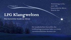 Das Liebfrauengymnasium Büren lädt herzlich zum diesjährigen Konzert „LFG – Klangwelten“ am Donnerstag, den 11.12.2025 um 19 Uhr in die Jesuitenkirche Büren ein.