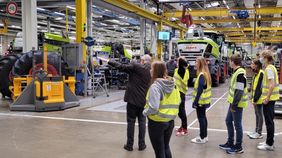 Dort angekommen, wurde zunächst ein Foto vor einem Jaguar Feldhäcksler in der lokalen Ausstellungshalle gemacht, um den Tag somit für alle festzuhalten. Anschließend hörten wir einen Einführungsvortrag in die Landtechnik, in dem themenbezogene Fragen im Rahmen eines Preisrätsels gestellt wurden. Danach folgte eine Besichtigung der örtlichen Produktionshallen durch ehemalige Mitarbeiter von Claas, welche uns direkte Einblicke in die Produktion der Landmaschinen bot. Wir konnten sehen, wie einzelne Teile der Landmaschinen maschinell bearbeitet und zusammengebaut wurden.