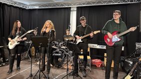 Die Begegnungskonzerte fanden am 28.2.24 an sechs Schulen in Münster statt. Die LFG-Band wurde an der Gesamtschule Münster Mitte herzlich begrüßt und traf dort auf 4 weitere Ensembles aus ganz NRW. Mit dabei waren Lorenz Dahl (8a/E-Bass), Fabian Rose (8c/Keyboard), Emily-Mae Joseph (9c/Gesang), Joda Schuster (10a/Schlagzeug), Justus Dahl (10c/E-Gitarre) sowie Svenja Günther (Q1/E-Gitarre).