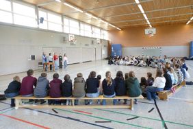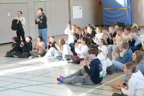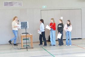 Vor der Jury, bestehend aus den Deutschlehrkräften Rabea Jäger, Britta Lange, Martin Steffens und Sarah Tanzer, präsentierten die Klassensiegerinnen zunächst selbst gewählte Texte. Alle vier erhielten großen Applaus, denn die Schülerinnen und Schüler der sechsten Klassen verfolgten den Wettbewerb aufmerksam und mit großer Begeisterung.
