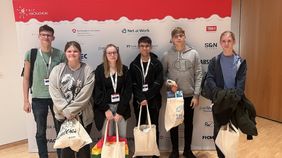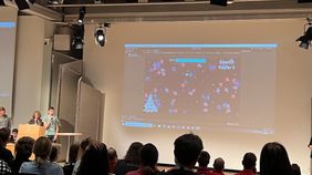 Um 13 Uhr war es dann so weit und alle präsentierten während einer Vorstellung im großen Hörsaal ihre Projekte. Am Ende bekamen wir noch eine Geschenk-Tüte mit vielen Präsenten und machten Gruppenfotos.
