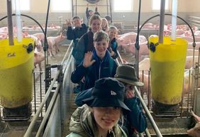 Am Freitag, den 26.05.2023 besuchte unsere Klasse im Rahmen des Erdkundeunterrichts zusammen mit Frau Gerold-Korley und Herrn Glawe den Bauernhof Kleine. Der Eigentümer Philipp Kleine erklärte uns im ersten Teil viel über die Geschichte und den Strukturwandel seines Hofes, über das Futter der Tiere und ein wenig zu möglichen Krankheiten seiner Hofbewohner. Auf seinem Hof leben viele Schweine, Hühner und ein Hofhund. Bei der Besichtigung der Ställe sollten wir auf die Heuraufen, Kratzbürsten und riesigen Fenster achten, die den Schweinen ausreichend Sonnenlicht garantieren. Gelernt haben wir auch, dass die Ställe erhitzt werden, um zu verhindern, dass die Mastschweine (Haltungsform 2) kalt werden und dadurch möglicherweise Fett verlieren. Bauer Kleine besitzt auch zwei Hühnermobile, die sein Pyrenäenhund „Ombra“ vor dem Fuchs bewacht. Unsere Besichtigung endete am Hofladen, in dem man zahlreiche Produkte rund um die Uhr kaufen kann. Dass jeder sogar noch ein frisches Ei geschenkt bekam, rundete den tollen Wandertag ab. Danke Philipp, dass wir bei dir zu Besuch sein durften.